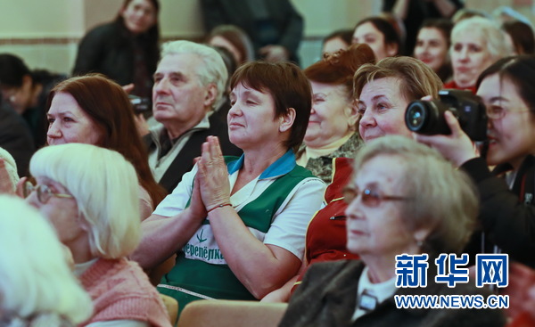 基輔市敬老院的孤殘老人們興致勃勃地觀看孔院師生帶來的文藝節(jié)目。新華網(wǎng)發(fā)(陳俊鋒攝)