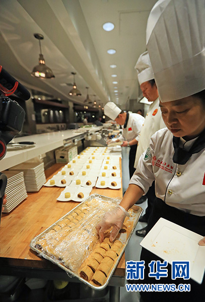 參加活動的“中華老字號”企業(yè)全聚德、東來順的頂級廚師為現(xiàn)場觀眾展示了蓑衣黃瓜、蒙面刀工等烹飪技巧,龍須拉面細(xì)如發(fā)絲,用打火機(jī)靠近,瞬間呈現(xiàn)出遇火即燃的神奇一幕。中國廚師們的精湛技藝令來賓贊嘆不已。
