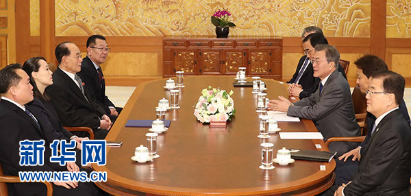 據(jù)韓國總統(tǒng)府青瓦臺消息,參加會見的朝方代表團由朝鮮最高人民會議常任委員會委員長金永南率領,代表團成員還包括朝鮮勞動黨中央委員會第一副部長金與正、國家體育指導委員會委員長崔輝、祖國和平統(tǒng)一委員會委員長李善權。