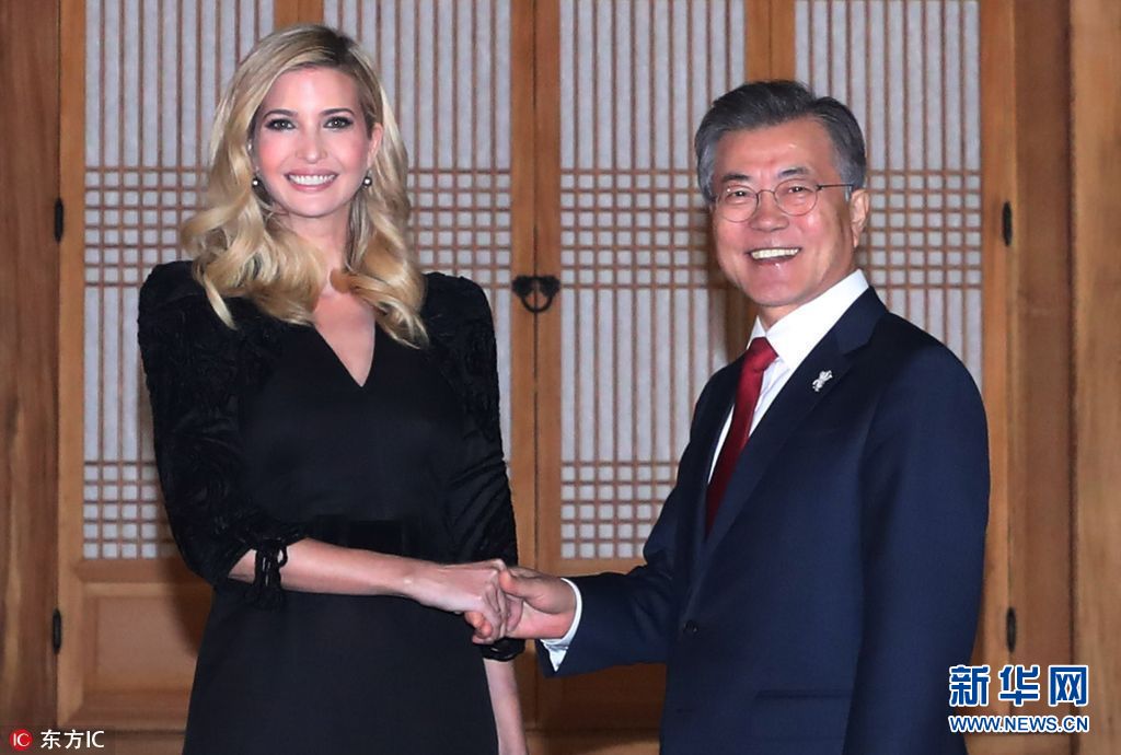 當(dāng)?shù)貢r(shí)間2018年2月23日,韓國(guó)首爾,韓國(guó)總統(tǒng)文在寅夫婦在青瓦臺(tái)設(shè)晚宴,歡迎伊萬卡來訪。美國(guó)總統(tǒng)特朗普之女、總統(tǒng)助理伊萬卡率領(lǐng)的美國(guó)代表團(tuán)23日抵韓進(jìn)行訪問,并將出席平昌冬奧會(huì)閉幕式。(圖片來源:東方IC)