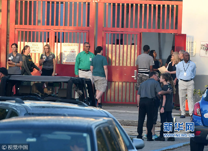 當(dāng)?shù)貢r(shí)間2月28日,美國佛羅里達(dá)州帕克蘭,發(fā)生槍擊案的道格拉斯中學(xué)復(fù)課,學(xué)生和教職工重返校園,大批警察出動(dòng)維護(hù)治安。2月14日,一名19歲的槍手在學(xué)校里開槍,造成17人死亡。(圖片來源:視覺中國)