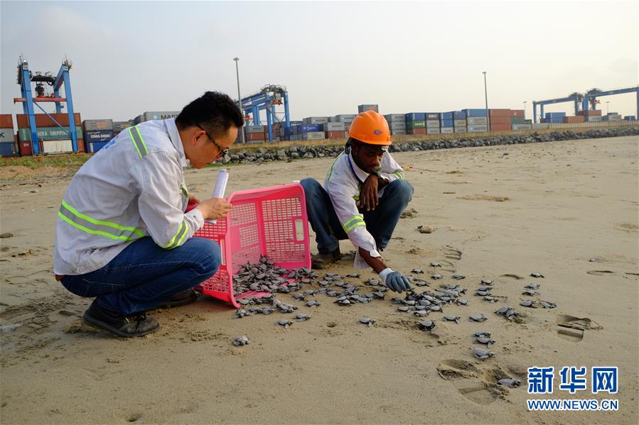 每年10月至次年3月是加納海域海龜?shù)漠a(chǎn)卵與孵化期,成年海龜會陸續(xù)來到海灘產(chǎn)卵,繁衍下一代。為了保障項目工程區(qū)域海龜正常產(chǎn)卵孵化,承建單位中國港灣工程有限責(zé)任公司(中國港灣)2017年11月建立了海龜孵化基地,將野生海龜在沿岸產(chǎn)的卵收集起來進行集中孵化,在小海龜孵化后放回大海。