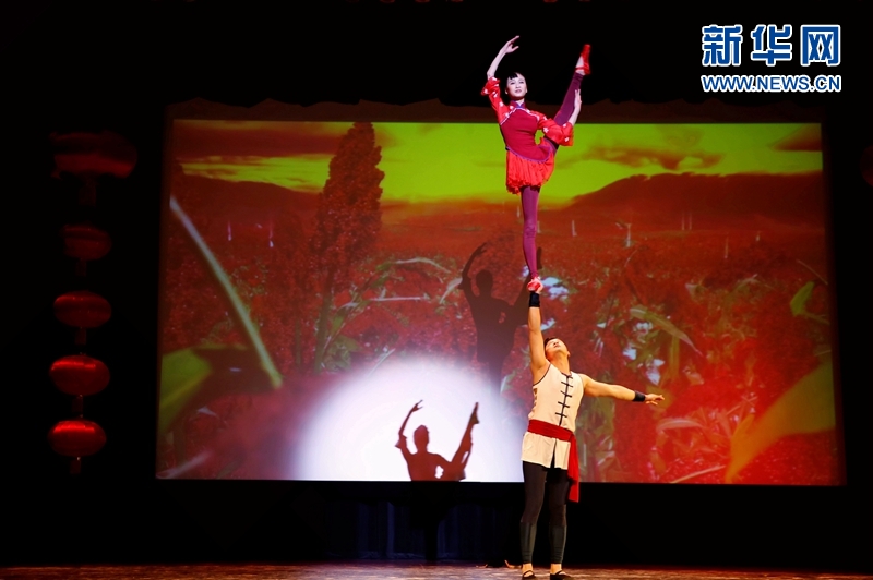 3月2日,在美國密歇根州底特律市,廣東省藝術(shù)團的演員在2018年“歡樂春節(jié)--祖國陪你過年”活動中表演雜技《肩上芭蕾》。新華網(wǎng)發(fā)(圖片由中國駐芝加哥總領(lǐng)館提供)