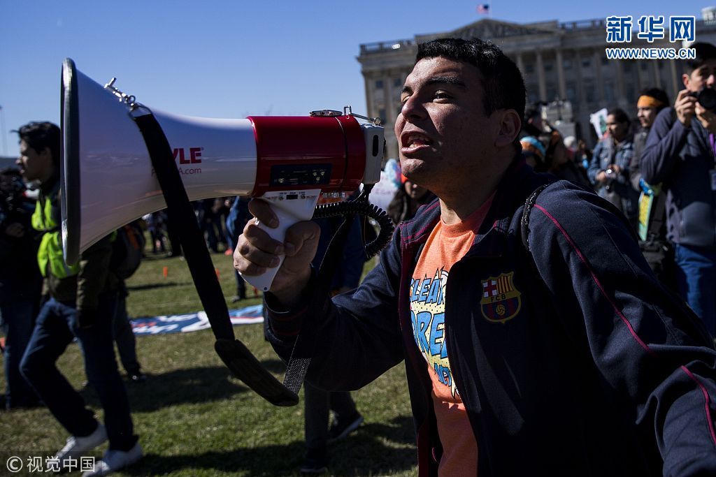 當(dāng)?shù)貢r間2018年3月5日,美國華盛頓,移民活動家在國會山舉行集會,抗議特朗普終結(jié)“夢想法案”計劃。(圖片來源:視覺中國)
