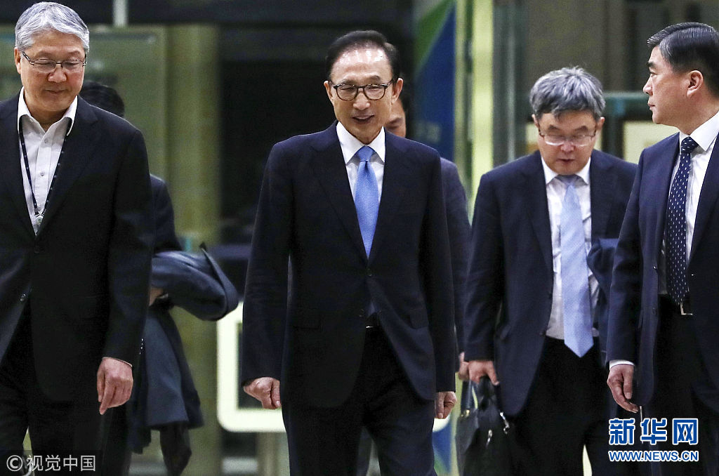 3月15日,韓國首爾,韓國前總統(tǒng)李明博在接受了檢方超過21小時的調(diào)查后返家。他涉嫌包括受賄、挪用公款等在內(nèi)的20多項罪名,同時也是韓國第五位被檢方調(diào)查的前總統(tǒng)。(圖片來源:視覺中國)