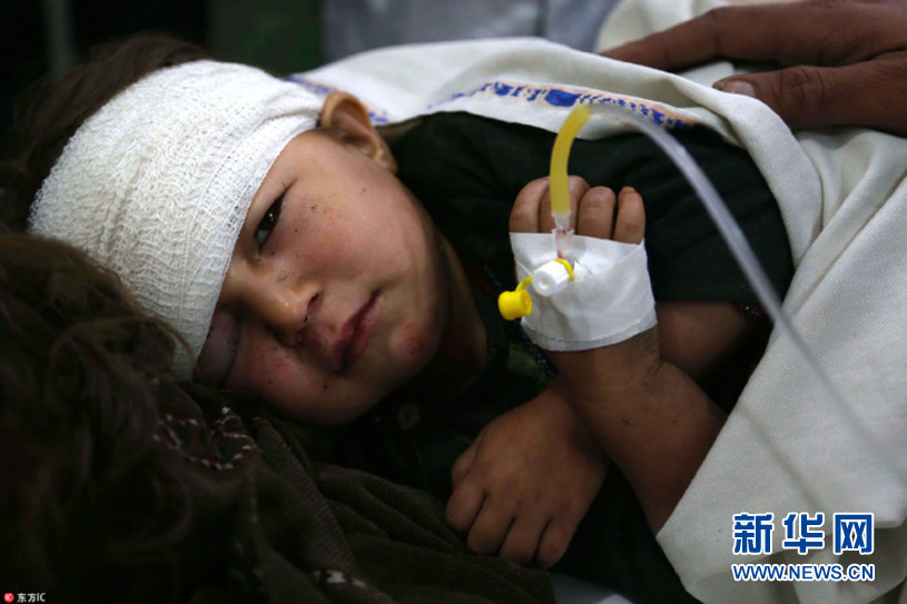 當(dāng)?shù)貢r間2018年4月20日,阿富汗賈拉拉巴德,受傷的兒童在醫(yī)院接受治療。4月19日,當(dāng)?shù)匕l(fā)生爆炸事故,致至少5名平民死亡,14人受傷。(圖片來源:東方IC)