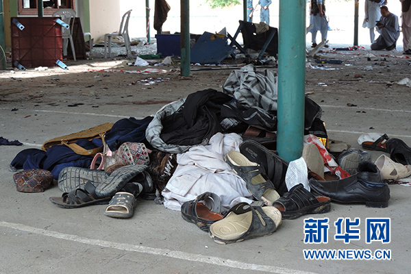 這是5月6日在阿富汗東部霍斯特省發(fā)生爆炸的選民注冊站拍攝的受害者衣物。新華社發(fā)(扎曼·納扎里攝)
