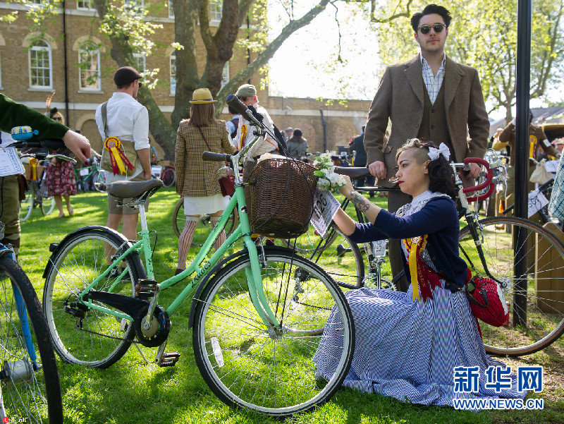 當(dāng)?shù)貢r(shí)間2018年5月5日,英國(guó)倫敦,當(dāng)?shù)嘏e辦復(fù)古騎行活動(dòng),民眾身穿花呢子服裝騎車穿行在倫敦街頭。今年是該活動(dòng)舉辦十周年。(圖片來源:東方IC)