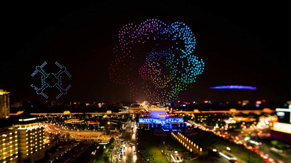 本次挑戰(zhàn)所呈現(xiàn)的1374架無人機翱翔西安城墻上空,刷新了英特爾于2017年12月在韓國平昌創(chuàng)下的1218架“最多無人機同時飛行”吉尼斯稱號。