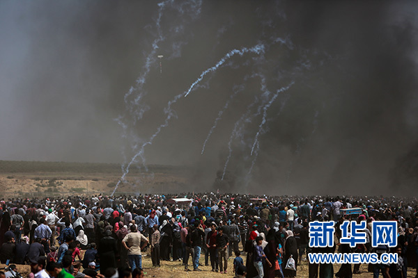 數(shù)萬(wàn)名巴勒斯坦人14日在加沙地帶與以色列交界地區(qū)舉行抗議示威并與以軍發(fā)生沖突。新華社記者當(dāng)天在沖突現(xiàn)場(chǎng)看到,一些示威者焚燒輪胎,現(xiàn)場(chǎng)升起滾滾濃煙。示威人群還向以軍方面投擲石塊。駐守邊境的以色列士兵發(fā)射催淚瓦斯并實(shí)彈射擊。