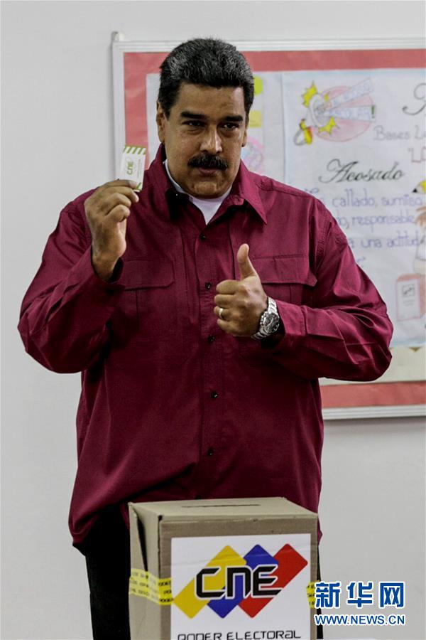 5月20日,委內(nèi)瑞拉國(guó)家選舉委員會(huì)宣布,現(xiàn)任總統(tǒng)馬杜羅贏得本次總統(tǒng)選舉。這是5月20日,馬杜羅在加拉加斯的一處投票點(diǎn)投票的資料照片。新華社發(fā)(鮑里斯·貝爾加拉 攝)