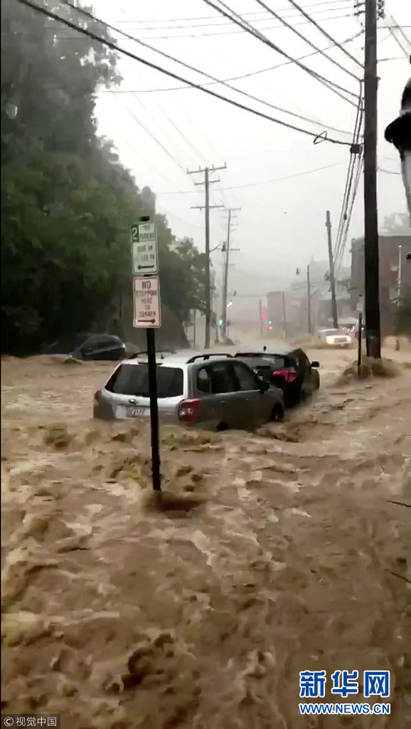 美國(guó)馬里蘭州爆發(fā)洪水 城市街道變湍急河流