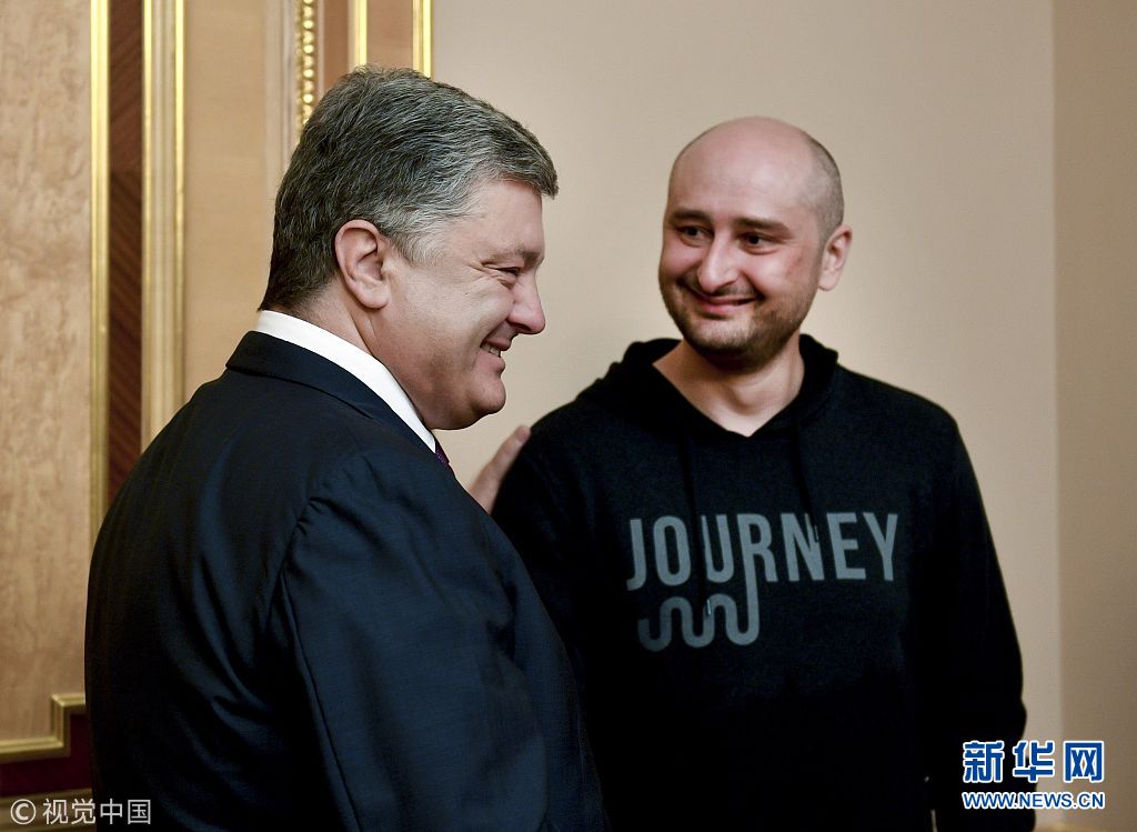 5月30日,烏克蘭基輔,烏克蘭總統(tǒng)波羅申科會(huì)見此前被報(bào)道“死亡”的俄羅斯記者巴布琴科。(圖片來(lái)源:視覺中國(guó))