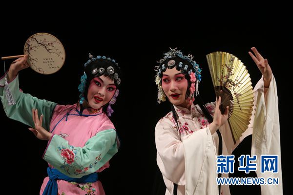 ?。对拢啡眨诎锥砹_斯東部城市莫吉廖夫,兩位中國(guó)戲曲演員在表演昆曲《牡丹亭》。新華網(wǎng)發(fā) 魏忠杰 攝