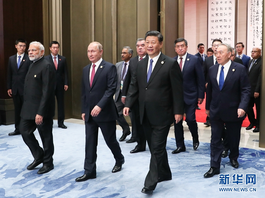 新華社青島6月10日電(記者孫奕、溫馨)上海合作組織成員國(guó)元首理事會(huì)第十八次會(huì)議小范圍會(huì)談10日在青島國(guó)際會(huì)議中心舉行。國(guó)家主席習(xí)近平主持。印度總理莫迪、哈薩克斯坦總統(tǒng)納扎爾巴耶夫、吉爾吉斯斯坦總統(tǒng)熱恩別科夫、巴基斯坦總統(tǒng)侯賽因、俄羅斯總統(tǒng)普京、塔吉克斯坦總統(tǒng)拉赫蒙、烏茲別克斯坦總統(tǒng)米爾濟(jì)約耶夫出席會(huì)議。各成員國(guó)領(lǐng)導(dǎo)人就上海合作組織發(fā)展以及重大國(guó)際和地區(qū)問(wèn)題交換意見(jiàn)。