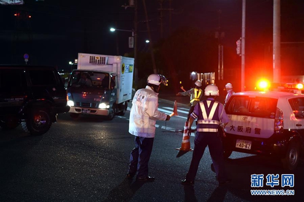 6月18日,在日本大阪,警察疏導(dǎo)過往車輛。據(jù)日本氣象廳消息,當(dāng)?shù)貢r間18日上午7時58分,日本大阪府發(fā)生6.1級地震。新華社記者馬平 攝
