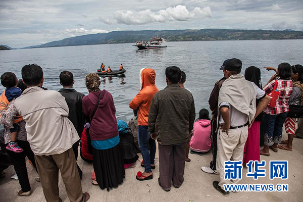 6月20日,在印度尼西亞北蘇門答臘省,人們在岸上觀看搜救行動。新華社發(fā)(達馬尼克攝)