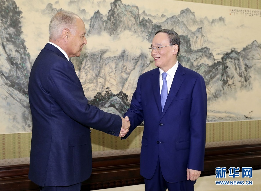 7月9日,國家副主席王岐山在北京中南海會見阿拉伯國家聯(lián)盟秘書長蓋特。新華社記者 丁林 攝