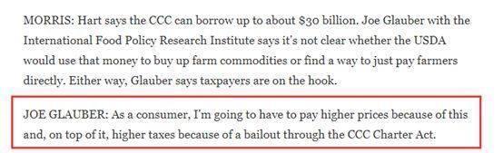 美國國家公共電臺繼續(xù)寫到:盡管特朗普在幾個(gè)月前一度對他們承諾會(huì)補(bǔ)償他們(原話為“We'll make it up to them”,還宣稱農(nóng)民們最終會(huì)比現(xiàn)在過得還要好,可專家與農(nóng)民對這些承諾卻并不感到樂觀。