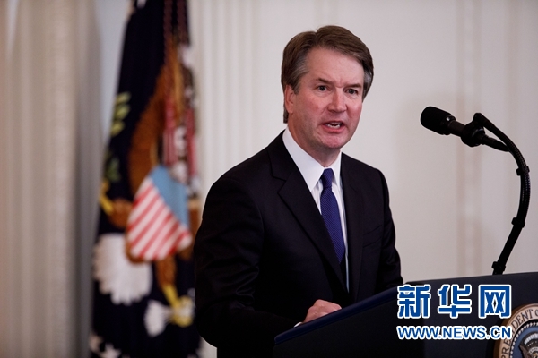 7月9日,在美國華盛頓白宮,布雷特·卡瓦諾發(fā)表講話。美國總統(tǒng)特朗普9日宣布,提名布雷特·卡瓦諾出任美國聯(lián)邦最高法院大法官。特朗普當(dāng)日晚間在白宮講話時(shí)宣布了這一決定,卡瓦諾同家人一起出席了提名典禮。新華社發(fā)(沈霆攝)