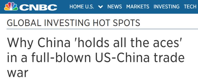 因此,CNBC這篇文章的作者也得出了與“布魯金斯學(xué)會”一樣的結(jié)論,即特朗普現(xiàn)在對中國的打擊只會傷及自身和盟友。這位作者甚至也列舉了CBS新聞網(wǎng)今天提到的那個iPhone手機的例子,并認(rèn)為一旦中美貿(mào)易戰(zhàn)“全面爆發(fā)”,中國手上可打的“王牌”要比美國多。