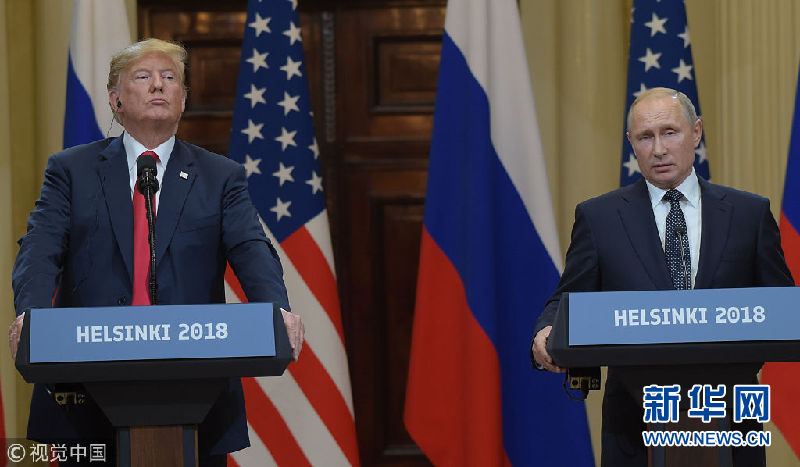 當地時間2018年7月16日,芬蘭赫爾辛基,美國總統(tǒng)特朗普與俄羅斯總統(tǒng)普京出席聯合新聞發(fā)布會。(圖片來源:視覺中國)