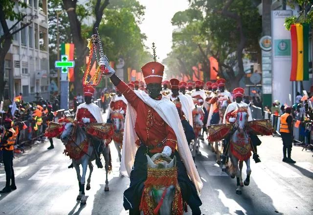 塞內加爾當?shù)孛癖娚碇?jié)日盛裝,夾道歡迎習近平主席。(新華社記者燕雁攝)