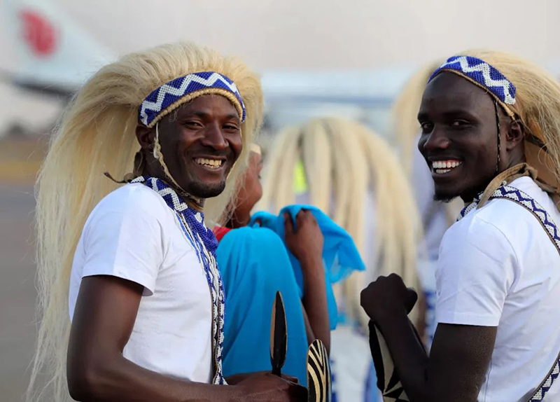 在機(jī)場(chǎng)舉行的歡送儀式上,身著民族服裝的盧旺達(dá)民眾。新華社記者 龐興雷攝