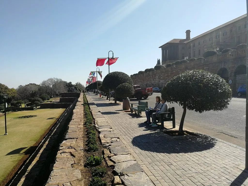 按照以往國事訪問的慣例,南非總統(tǒng)將在聯(lián)邦大廈廣場為習近平主席舉行隆重歡迎儀式。在習近平主席抵達的前幾天,聯(lián)邦大廈前的道路上已經(jīng)掛滿了中國和南非兩國國旗。
