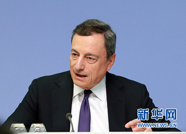 7月26日,在德國(guó)法蘭克福的歐洲中央銀行總部,歐洲央行行長(zhǎng)德拉吉出席新聞發(fā)布會(huì)。 新華社記者 羅歡歡 攝