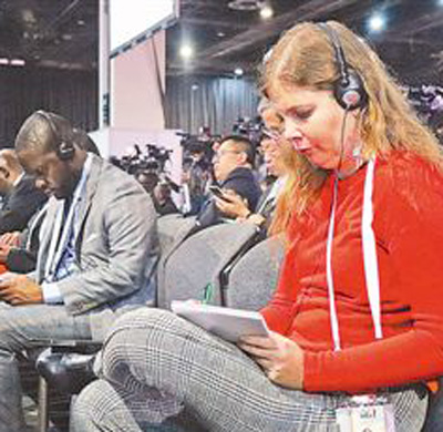 金磚國家工商論壇現(xiàn)場,記者正在認(rèn)真記錄。本報(bào)記者 謝亞宏攝
