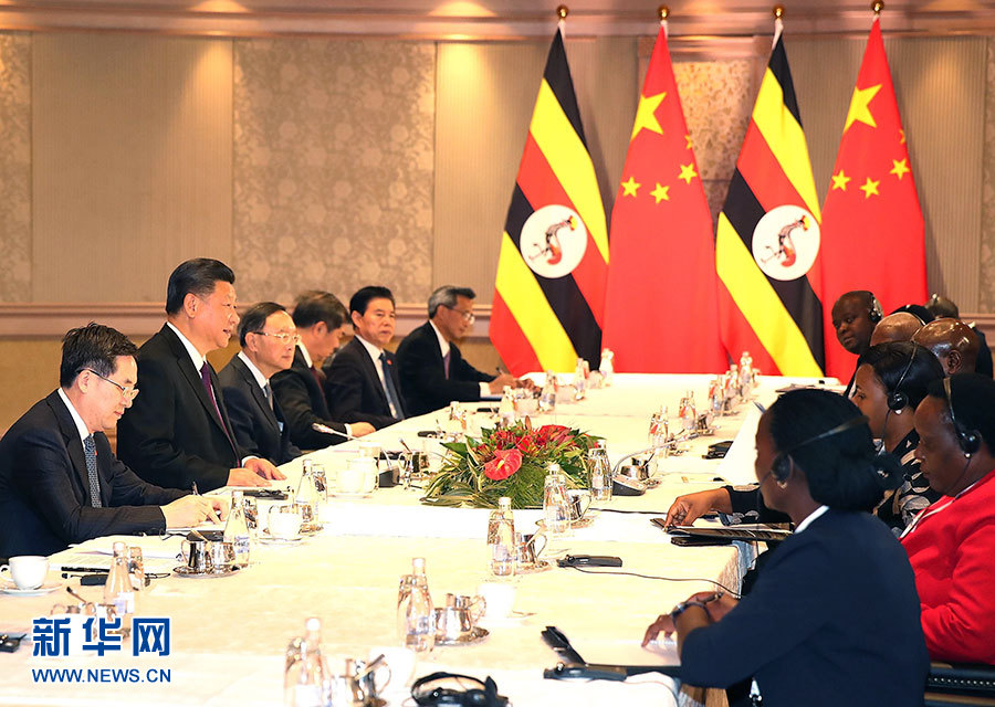 7月26日,國(guó)家主席習(xí)近平在南非約翰內(nèi)斯堡會(huì)見(jiàn)烏干達(dá)總統(tǒng)穆塞韋尼。 新華社記者 廖宇杰 攝