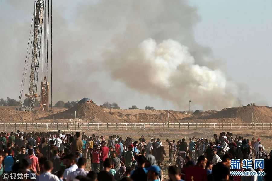 當(dāng)?shù)貢r(shí)間2018年7月27日,加沙,巴勒斯坦民眾在加沙和以色列邊境舉行大規(guī)模的示威活動(dòng)。(圖片來(lái)源:視覺(jué)中國(guó))