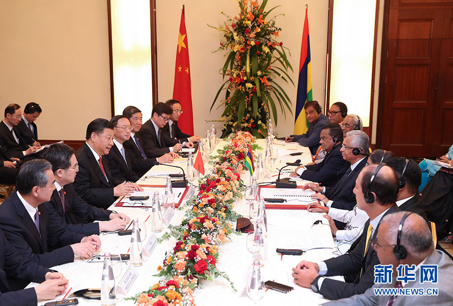 習近平強調(diào),中毛都是發(fā)展中國家,有著相似的發(fā)展經(jīng)歷和發(fā)展任務。當前,中毛關系發(fā)展面臨新的重要機遇。我們要保持高層交往勢頭,加強政府部門、立法機構、地方等往來,繼續(xù)在涉及彼此核心利益和重大關切問題上相互理解和支持。要挖掘務實合作潛力,提高雙方貿(mào)易和投資自由化便利化水平,早日商簽中毛自由貿(mào)易協(xié)定,發(fā)揮毛里求斯參與共建“一帶一路”的獨特區(qū)位優(yōu)勢,加強溝通對接,深化廣泛領域合作。要加強人文交流,促進相互了解。中方愿同毛方加強氣候變化南南合作,密切在國際事務中協(xié)作,維護發(fā)展中國家共同利益。