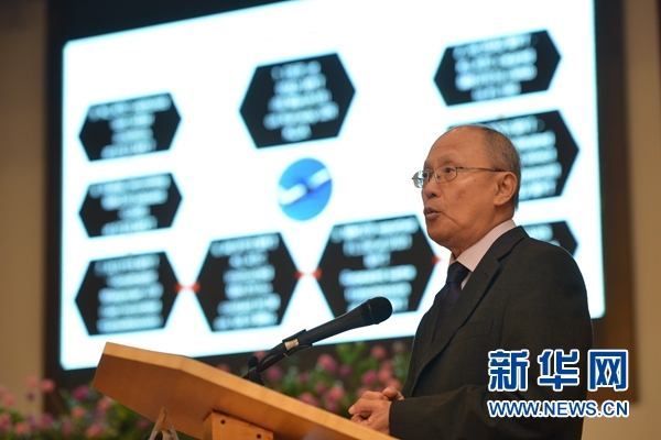 7月30日,馬航370航班客機(jī)安全調(diào)查組負(fù)責(zé)人郭師傳在馬來(lái)西亞普特拉賈亞舉行的新聞發(fā)布會(huì)上講話。新華社發(fā)(張紋綜攝)