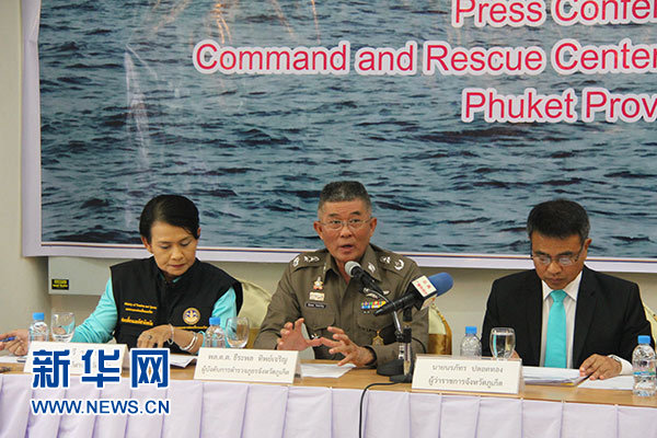 8月7日,普吉府警察局局長提拉蓬·提乍龍(中)在發(fā)布會上介紹案件調查情況。新華社記者 徐海濤 攝