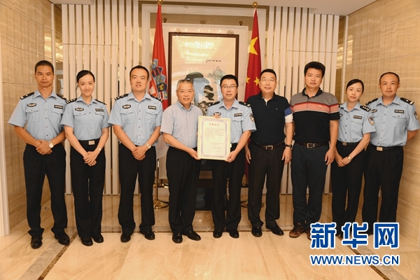 8月14日,中國駐克羅地亞大使胡兆明(左四)在薩格勒布為圓滿完成首次中克警務聯(lián)巡的中國警察頒發(fā)表彰證書。6名中國警察15日從克羅地亞首都薩格勒布啟程回國,為期一個月的中國與克羅地亞首次旅游季警務聯(lián)合巡邏圓滿結束。新華網發(fā) 高磊攝