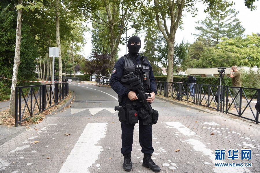 8月23日,在法國(guó)巴黎西南郊特拉普市,一名警察在案發(fā)現(xiàn)場(chǎng)警戒。據(jù)法國(guó)媒體報(bào)道,23日上午,一名男子在首都巴黎西南郊的特拉普市街頭持刀行兇,造成2人死亡、1人受傷;該男子被隨后趕來(lái)的法國(guó)警方擊斃。 新華社記者陳益宸攝