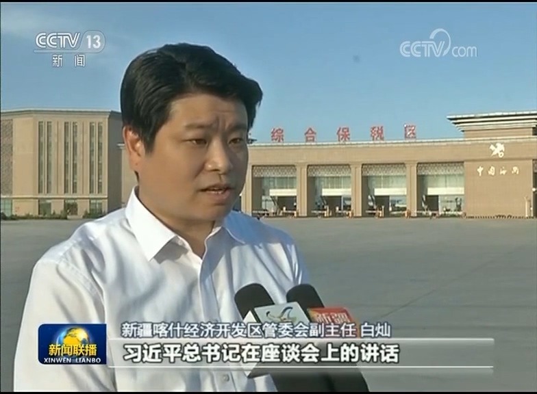 新疆喀什經(jīng)濟(jì)開(kāi)發(fā)區(qū)管委會(huì)副主任 白燦:習(xí)近平總書(shū)記在座談會(huì)上的講話,為我們做好下一階段“一帶一路”工作提供了根本的遵循。我們將和周邊沿線國(guó)家按照“共商、共建、共享”的原則,共同推動(dòng)跨國(guó)的基礎(chǔ)設(shè)施建設(shè)的互聯(lián)互通。