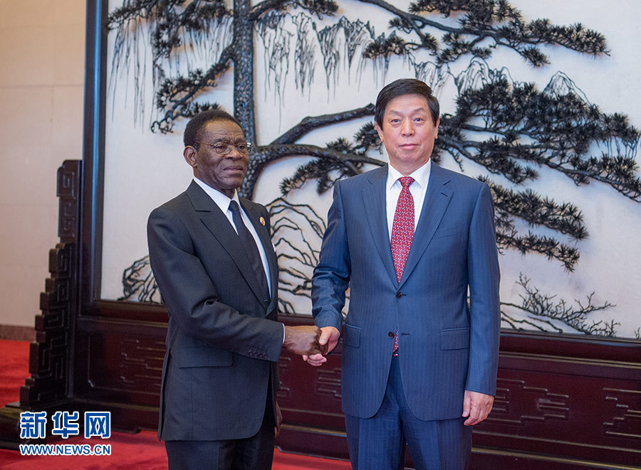 9月2日,全國人大常委會委員長栗戰(zhàn)書在北京人民大會堂會見赤道幾內亞總統(tǒng)奧比昂。? 新華社記者 翟健嵐 攝