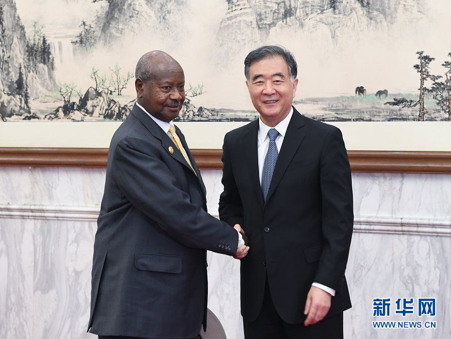 9月6日,全國政協(xié)主席汪洋在北京釣魚臺國賓館會見烏干達總統(tǒng)穆塞韋尼。 新華社記者 申宏 攝
