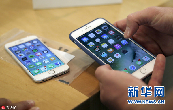 美國(guó)芝加哥,顧客正在體驗(yàn)全新蘋果智能手機(jī)。
