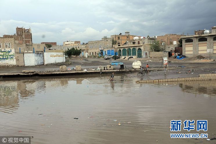 當(dāng)?shù)貢r間2018年10月23日,也門薩那,連日暴雨導(dǎo)致街道積水嚴(yán)重。(圖片來源:視覺中國)
