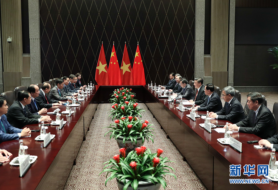 習近平強調,中越要保持兩黨兩國高層密切交往傳統(tǒng),加快推進“一帶一路”和“兩廊一圈”對接并及早確定優(yōu)先合作領域。中方愿鼓勵更多中國企業(yè)赴越南參與大項目合作,加強互聯(lián)互通。越南是本屆中國國際進口博覽會主賓國,又是中國在東南亞最大貿易伙伴。中方愿從越方進口更多適銷對路的產品。雙方要將合作多向民生領域傾斜,持續(xù)增進兩國民眾特別是青年一代友好感情。雙方要共同努力,維護海上和平穩(wěn)定,穩(wěn)步推進海上合作。