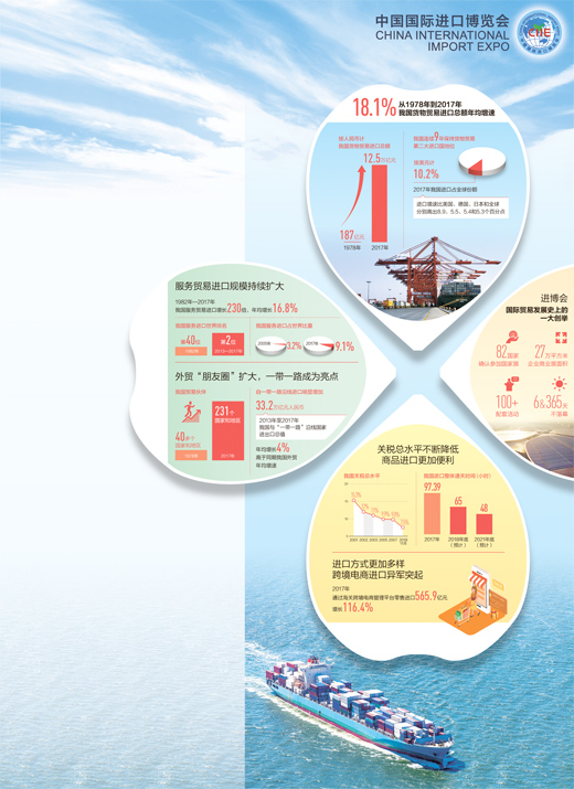 2017年,我國(guó)是增長(zhǎng)最快的全球主要進(jìn)口市場(chǎng),進(jìn)口增速比美國(guó)、德國(guó)、日本和全球分別高出8.9、5.5、5.4和5.3個(gè)百分點(diǎn),為世界各國(guó)企業(yè)提供了廣闊的市場(chǎng)和寶貴的合作契機(jī)。