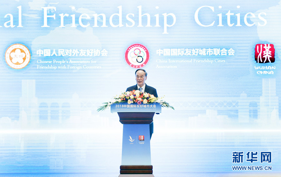 新華社武漢11月15日電(記者 廖君)2018中國(guó)國(guó)際友好城市大會(huì)15日在武漢開(kāi)幕。國(guó)家副主席王岐山出席開(kāi)幕式并做主旨發(fā)言。