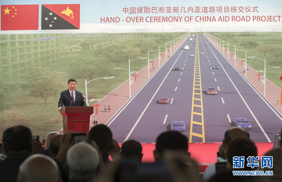11月16日,國家主席習(xí)近平在莫爾茲比港和巴布亞新幾內(nèi)亞總理奧尼爾共同出席中國援建的獨(dú)立大道移交啟用儀式。新華社記者 鞠鵬 攝