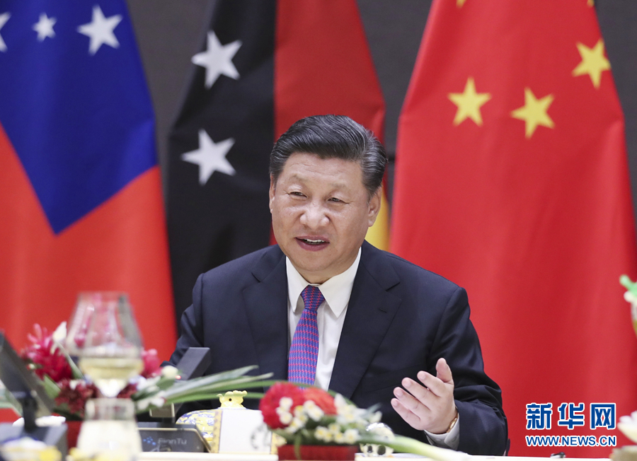 11月16日,國(guó)家主席習(xí)近平在莫爾茲比港同巴布亞新幾內(nèi)亞總理奧尼爾、密克羅尼西亞聯(lián)邦總統(tǒng)克里斯琴、薩摩亞總理圖伊拉埃帕、瓦努阿圖總理薩爾瓦伊、庫(kù)克群島總理普納、湯加首相波希瓦、紐埃總理塔拉吉等建交太平洋島國(guó)領(lǐng)導(dǎo)人以及斐濟(jì)政府代表、國(guó)防部長(zhǎng)昆布安博拉舉行集體會(huì)晤。習(xí)近平主持會(huì)晤并發(fā)表主旨講話。 新華社記者 謝環(huán)馳 攝