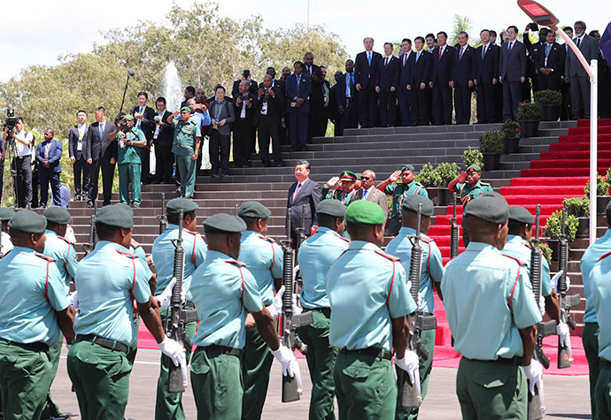 11月16日,國家主席習(xí)近平在莫爾茲比港會見巴布亞新幾內(nèi)亞總督達(dá)達(dá)埃。會見開始前,達(dá)達(dá)埃在議會大廈前廣場為習(xí)近平舉行隆重歡迎儀式。新華社記者 丁林 攝