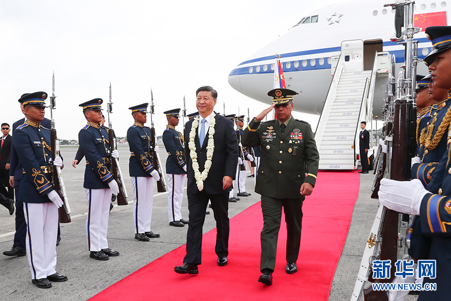 11月20日,國(guó)家主席習(xí)近平抵達(dá)馬尼拉,開始對(duì)菲律賓共和國(guó)進(jìn)行國(guó)事訪問。這是習(xí)近平在機(jī)場(chǎng)受到菲律賓政府高級(jí)官員熱情迎接。 新華社記者 謝環(huán)馳 攝